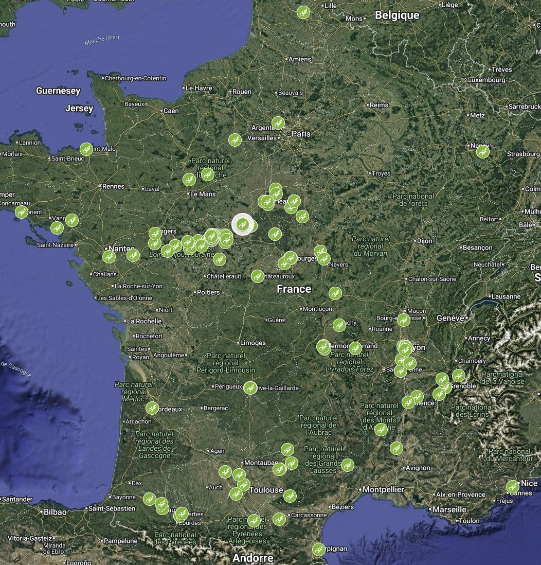 Nous recevons des informations de toute la France : pour les observations que nous avons pu authentifier le plus au nord est à Béthune, au nord-est à Nancy et au nord-ouest à Lorient et Saint-Malo... et beaucoup de nouvelles localisations restent à découvrir ou répertorier...