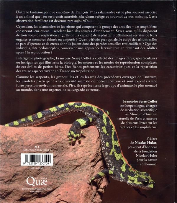- Comme les serpents, les grenouilles et les lézards des précédents ouvrages de l’auteure, les urodèles participent à la diversité animale de notre territoire et sont exposés à une forte pression environnementale. Pire, ils représentent le groupe d’animaux le plus menacé au monde, et à sauvegarder d'urgence.
