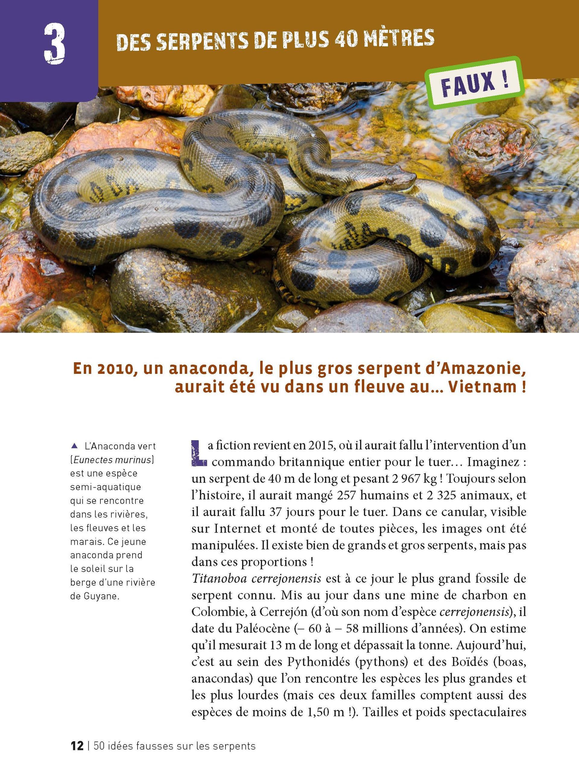 - Françoise Serre Collet a débusqué dans ce livre 50 idées reçues sur les serpents, qu’elle démystifie grâce à des explications scientifiques claires et accessibles. À travers près de 200 images, elle nous initie à leurs singularités biologiques, comportementales, et à la variété de leurs superbes espèces.