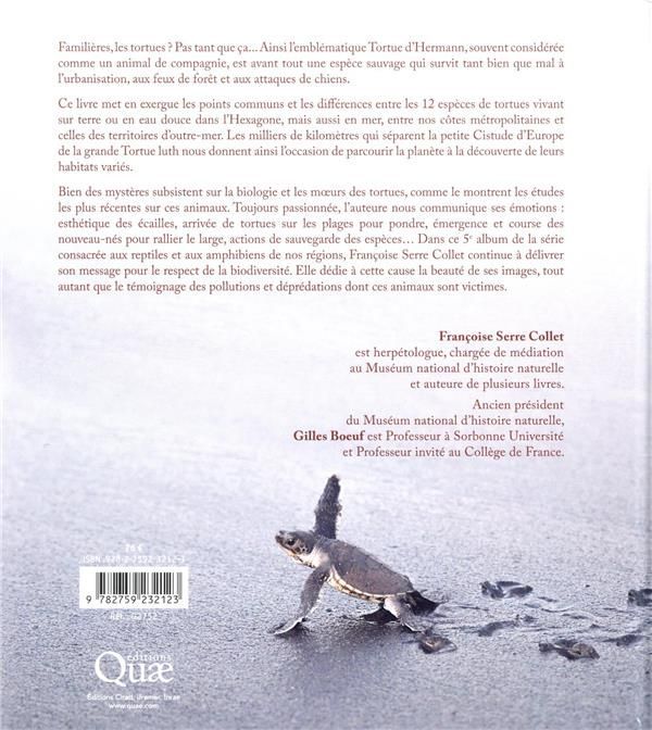 - Ce livre met en exergue les points communs et les différences entre les 12 espèces de tortues vivantes sur terre ou en eau douce dans l'Hexagone, mais aussi en mer, entre nos côtes métropolitaines et celles des territoires d'outre-mer.